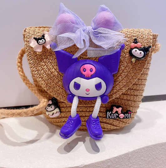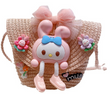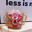 Cute Strawberry Pink Bear Fashionable Sweet Girl Straw Woven Bag Summer Vacation Crossbody Bag
